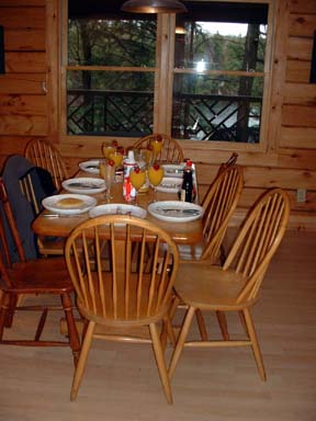 We set the table with elegance and make mimosas and fuzzy navels to go with our scrambled eggs, pancakes and fruit salad. |