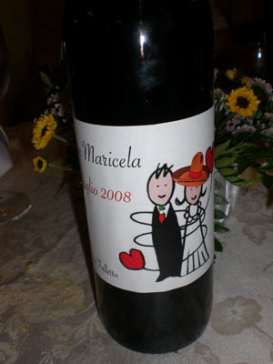 La bomboniera: una bottiglia personalizzata di dolcetto.