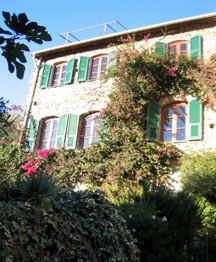We head back down the mountain and stumble across this agriturismo where there is just enough space left in the dining room for us to have lunch. The menu is fixed, which means that you get everything whether you like it or not. There are six antipasti-- five of which have potatoes as the main ingredient. (Ligurians are known for being a little tight and this is a good example of it--substituting potatoes for meat. The antipasti are followed by two primi (pasta dishes), two secondi (meat dishes) and two desserts. Oh my lord. We seriously have never been this full in our life. There seriously are potatoes coming out our ears.