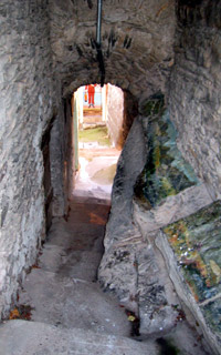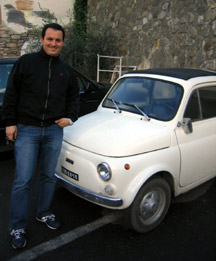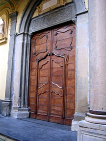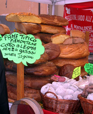 These are huge pieces of typical Piemontese bread. One whole bread is four or five feet long and one foot high. The bread is cooked in a wood-fired oven and contains only flour, water, salt, and yeast--no fat. I stopped to buy a chunk while waiting for Luca to get back from an errand and the vendor offered me a sample of champagne. I was rather thirsty and so accepted his little glass of champagne. Unfortunately it was disgusting and I left a little sip in the bottom of the cup. When I handed the glass back to the vendor to throw away, he swigged down the rest of what was left!!! Che schif! How gross!