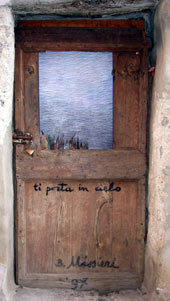 Literal translation: "It brings you into the sky or He brings you to heaven." Porta is also the word for "door" in Italian.