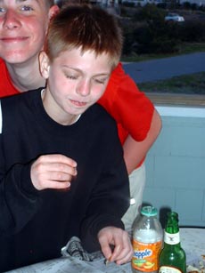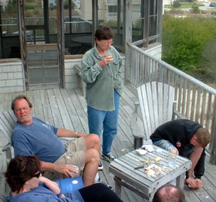 ![]() Just as we're about to give up hope, Mom and Mary have a brilliant brainstorm!! In their moment of genius they remind us of everyone's favorite OBX pastime; "Let's go crabbing!!" |