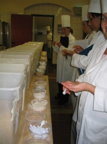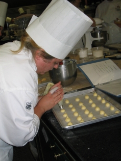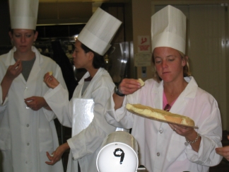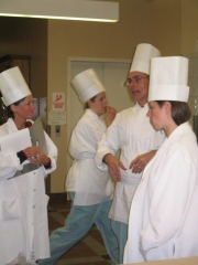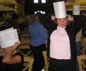 Ann: I can't believe we get to wear these hats every day! (So hot!) Shira: These disposable toques have "Free Halloween Costume" written all over them! |