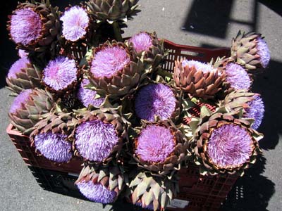 Over the next few days Brenda and Gerry (the ultimate hosts) show us the town and treat us to a life of luxury. These are blooming artichokes from the great local farmer's market. | |