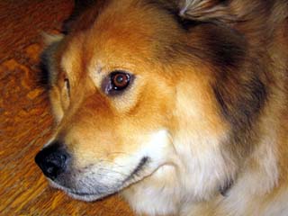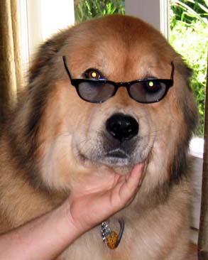 Soho welcomes us at the door. Looks like he's ready for the beach. | |