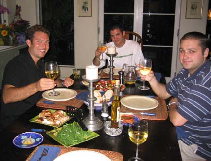 Later that evening Feldman and Zippo (old baseball buddies from way back) join us for a casual dinner. The menu includes a selection of goodies from our trip to the farmer's market earlier: Heirloom Tomato and Mozzarella Salad, Pan-Seared Red-Tail Tuna and Green Beans. Quite delish! The next morning Brenda and Gerry take us out for the traditional breakfast at Patrick's and then we're off again for the final leg of the cross-country journey. | |