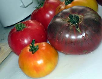 Brenda and Gerry have a previous engagement and have to be out for the night, so we pick up some fabulous heirloom tomatoes and decide to make dinner at home. | |